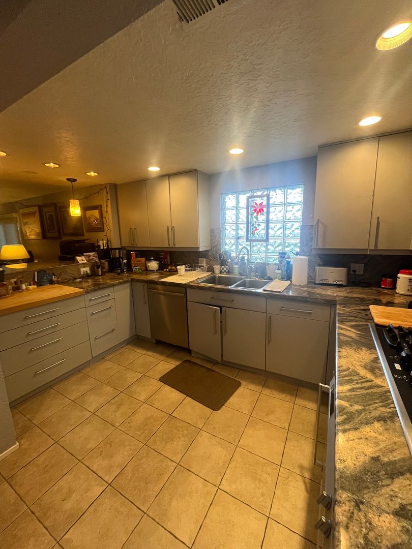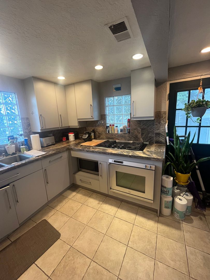 Across the courtyard, the guest home (Unit B) offers two rooms and a full bathroom. This space can function as a private studio, office, or guest quarters. Unit B is available as a short-term lease through May 31 and can be rented partially furnished, making move-in simple and convenient.