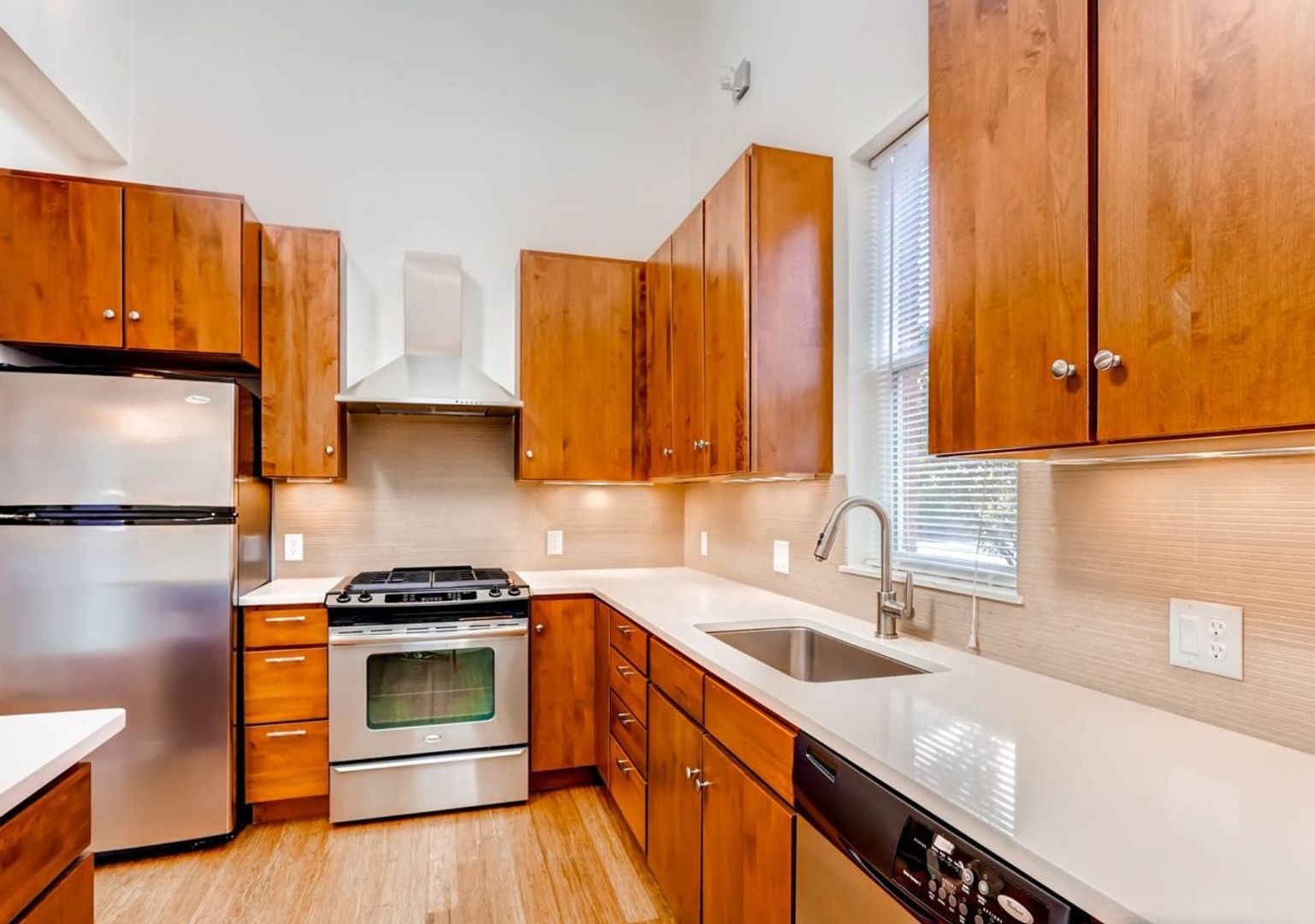 Walk into this home and you are greeted with an open floor, abundant natural light, tall ceilings, and updates throughout! Bamboo flooring throughout the main level. Large kitchen with granite countertops, custom cabinetry and plenty of cabinet/counter space, kitchen island with breakfast bar, stainless steel appliances, and a deep sink. Half bathroom and in unit laundry also on the first floor.