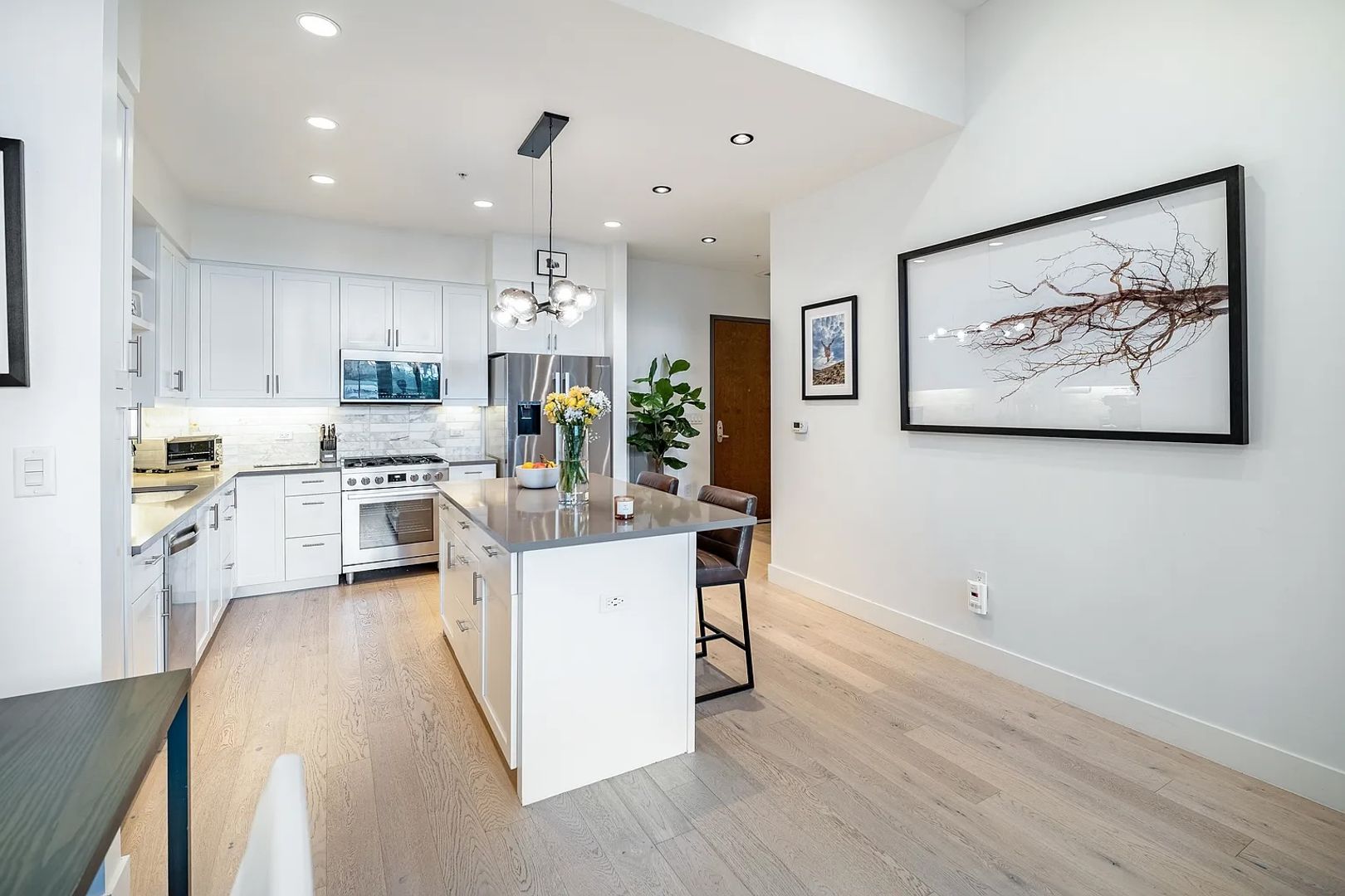 Luxurious 1 bed 1 bath condo at The Peloton. Walk into this open floor plan and you are greeted with stunning updates, 14-foot ceilings, noise canceling walls, south facing floor to ceiling windows, and abundant natural light.