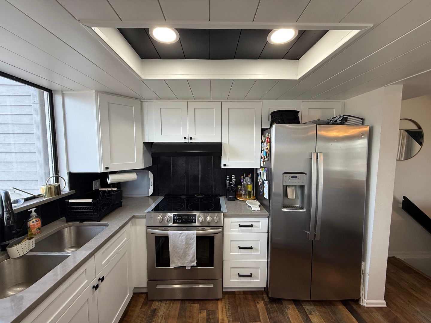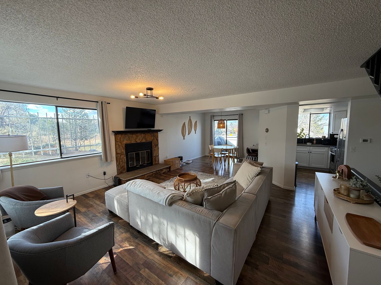 This charming 2-bedroom, 2-bathroom home has been thoughtfully refreshed throughout, starting with a modern kitchen featuring white shaker soft-close cabinets, quartz countertops, a breakfast bar, and stainless steel appliances. The wide-open main floorplan—including a dedicated dining area—offers plenty of space to entertain or simply relax by the cozy gas fireplace.