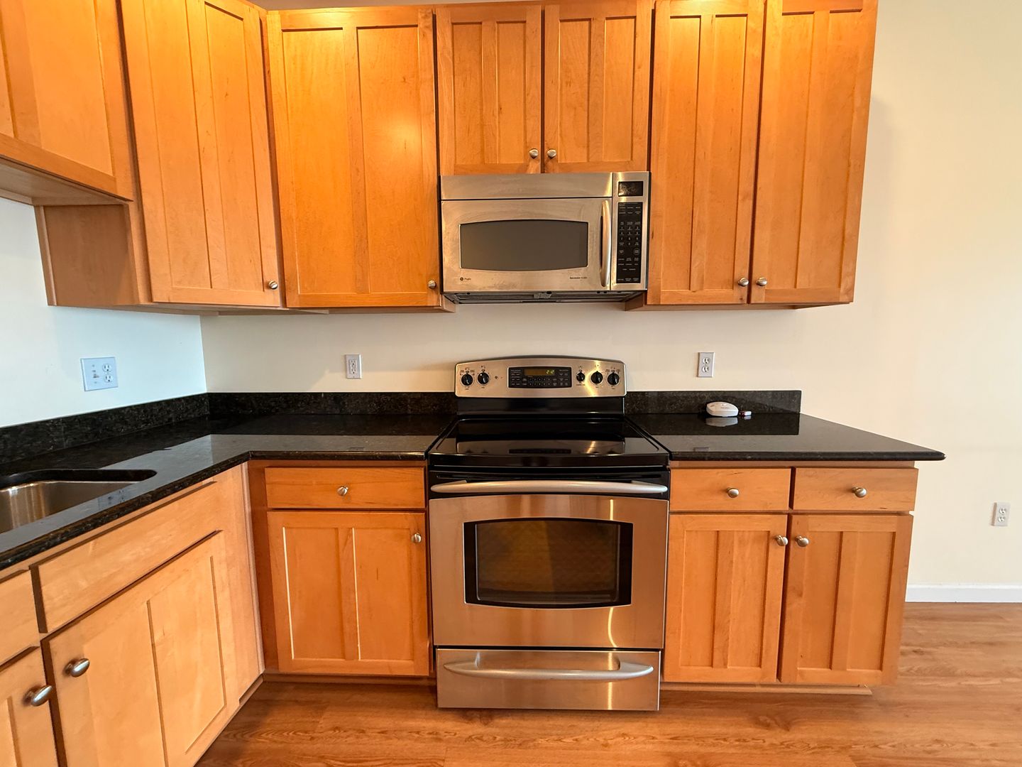 Inside, you’ll find hardwood floors, central heat and A/C, and a spacious layout designed for both comfort and functionality. The kitchen features granite countertops, stainless steel appliances, and plenty of cabinet space, making it ideal for everyday living or entertaining. The bedroom is comfortably carpeted, and the in-unit washer and dryer add everyday convenience.